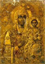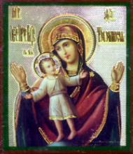 The Terebinskaya Icon of the Theotokos is in the Terebinsk Hermitage of St. Nicholas the Wonder-worker, in Tver Diocese. In this Icon, the Most-holy Theotokos is depicted at waist-length, with arms upraised. The Divine Infant is depicted at full-length, with outspread arms, and standing on a globe. This Icon is mentioned along with other miraculous icons in various documents of great antiquity, but no detailed accounts of the Icon exist. It is known that it appeared in 1654 next to the Terebinsk Hermitage, from which it got its name.